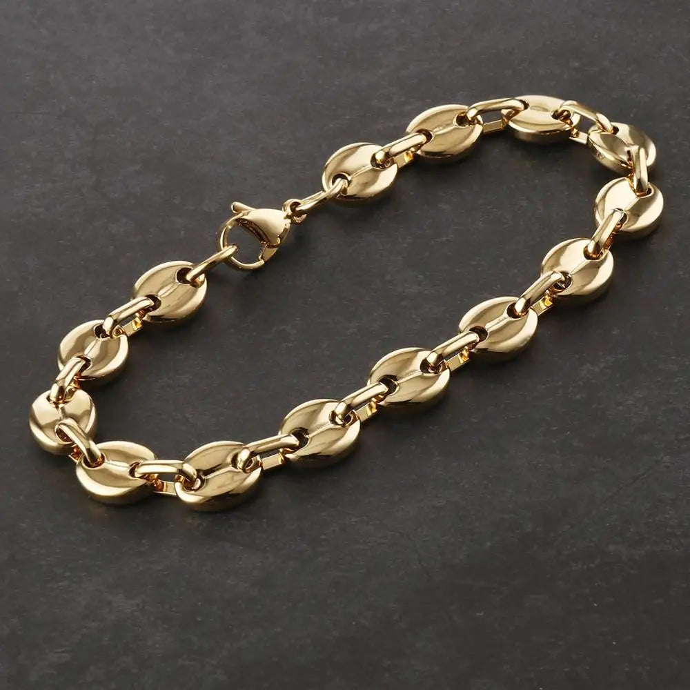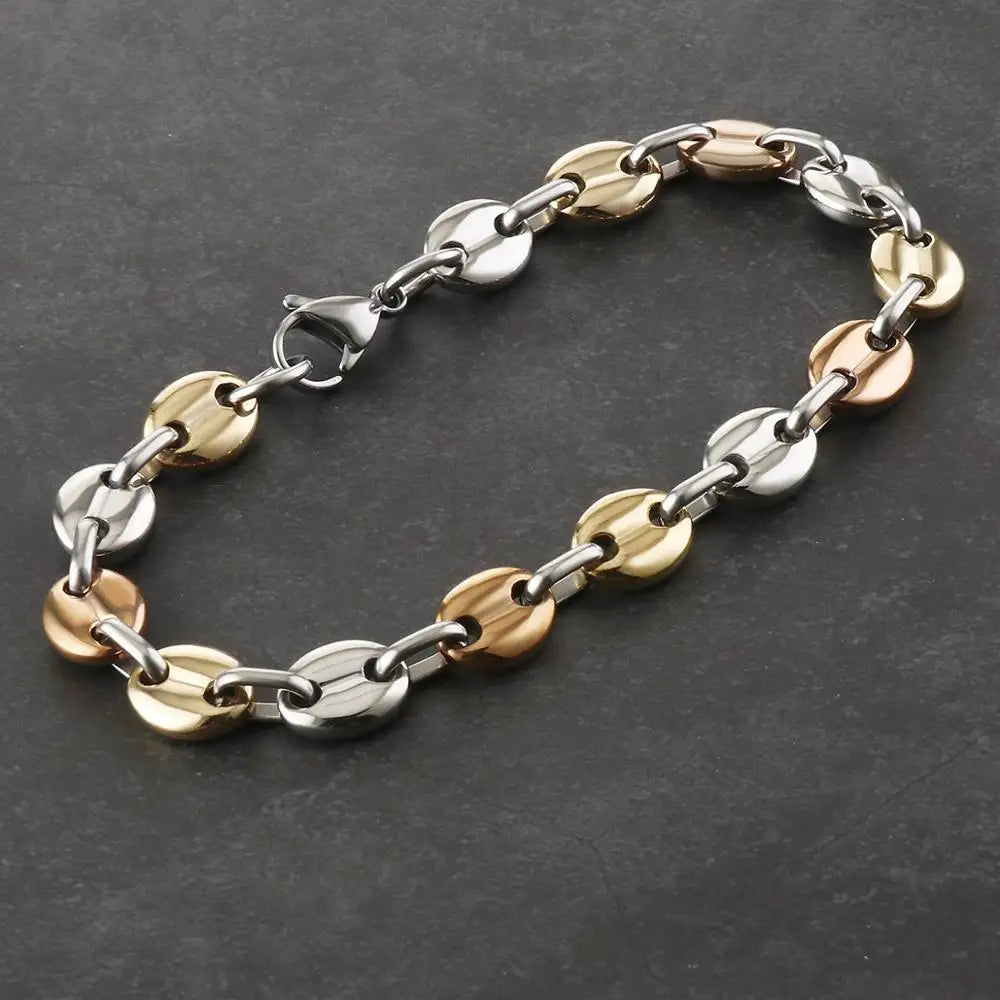 Bracelet Chaîne Homme 9mm Acier Inoxydable - Hip Hop Bicolore
