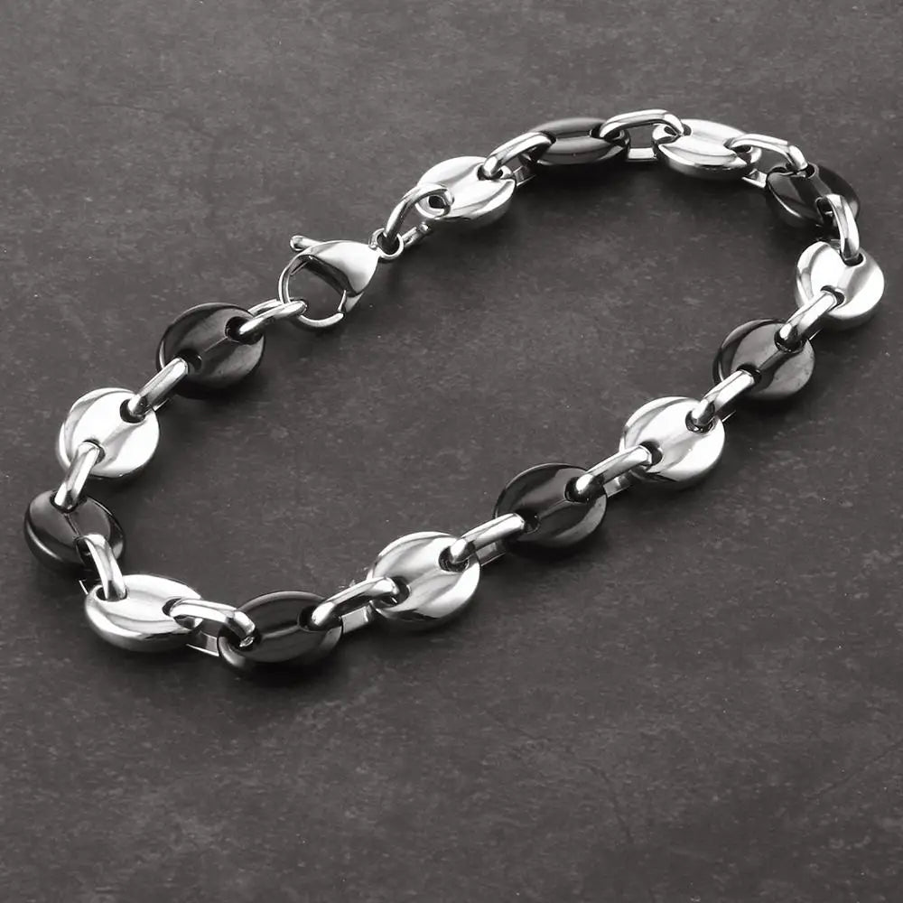 Affirmez votre caractère avec ce bracelet chaîne imposant ! Sa largeur 9mm et son design bicolore créent un look hip hop authentique. Ressentez cette puissance masculine qui ne passe pas inaperçue.